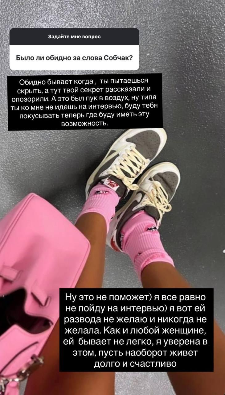 Также она подчеркнула, что не собирается отвечать тем же и переходить на обсуждение семейной жизни Собчак с Богомоловым. По ее словам, негатив ей чужд: «Я все равно не пойду к ней на интервью. Развода ей не желаю и никогда не желала. Как и любой женщине, ей бывает нелегко, я уверена в этом. Пусть, наоборот, живет долго и счастливо».
