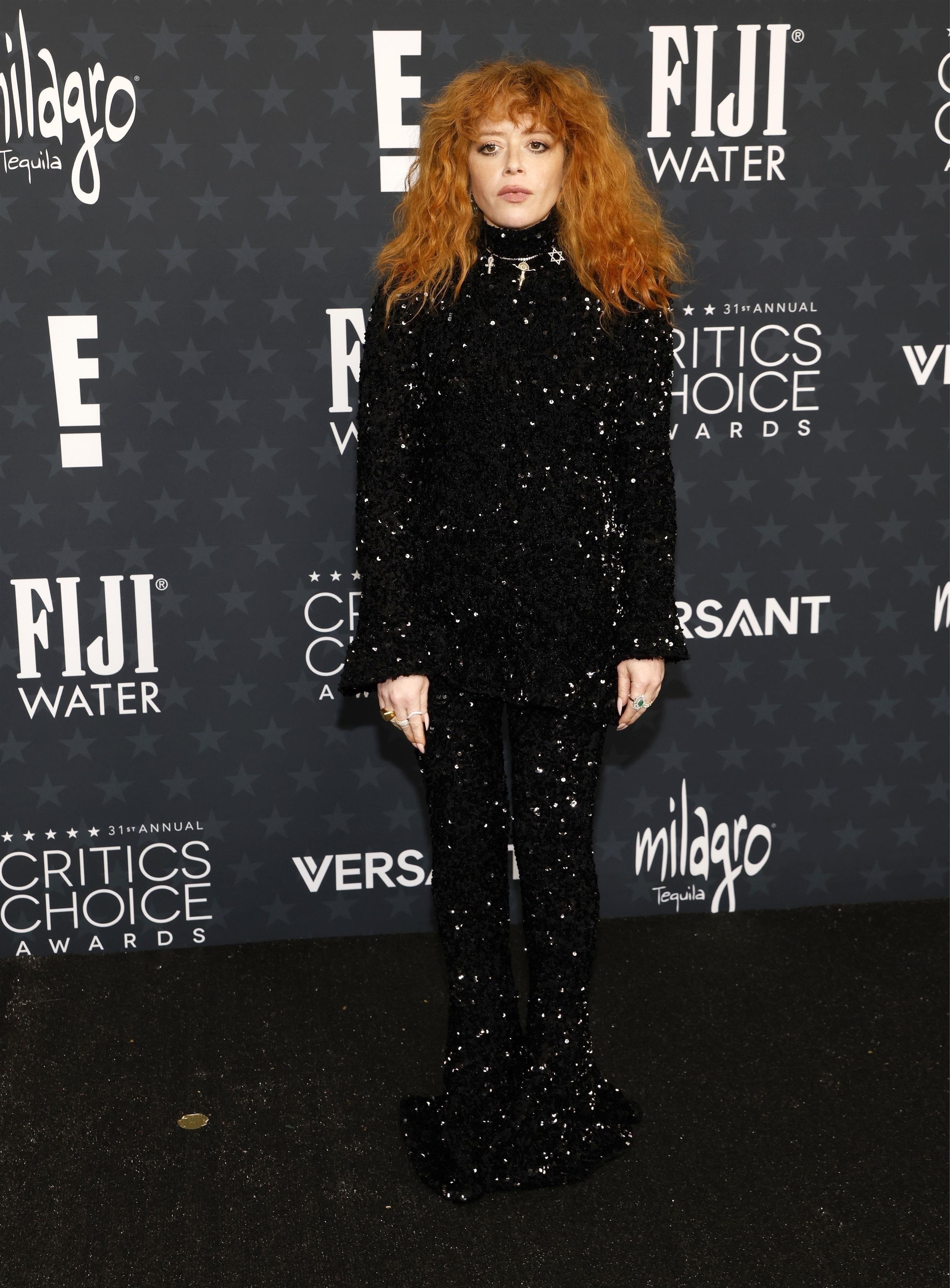 Для своего выхода светская львица выбрала архивное черное платье Versace: блестящее — все в лучших традициях Нового года. Кстати, на церемонии оказались и двойники Кайли Дженнер и Тимоти Шаламе. Комики Меган Сталтер и Пол У. Даунс просто скопировали один из самых вирусных выходов пары прошлого года — их оранжевые кожаные костюмы с премьеры «Марти Суприм», которые быстро разлетелись на мемы.