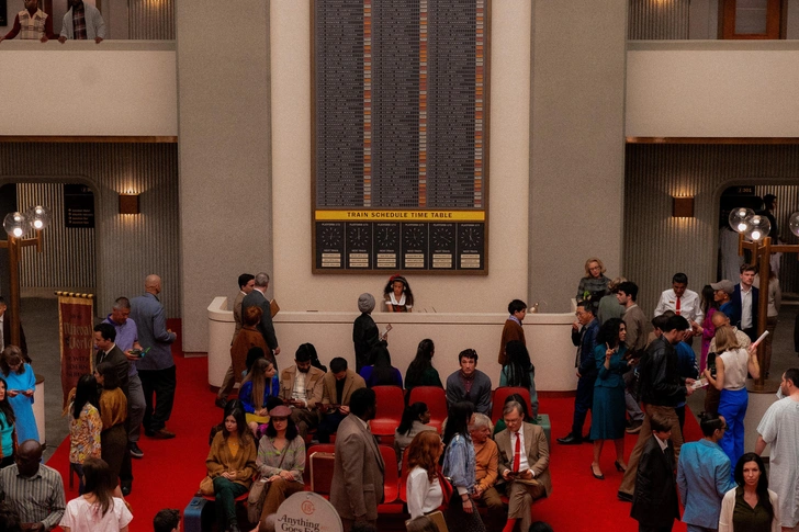 Герои фильма попадают не в обещанный рай, а как странный симбиоз вокзала и отеля. Здесь никто не обещает вечный покой. Вместо этого тебя заваливают рекламными буклетами с вариантами вечности, напоминающими путевки в идеальный отпуск. Хочешь бесконечный пляжный сезон? Пожалуйста. Может, Мир вечно заснеженных гор? Такое тут тоже есть. Но миры делятся не только на «пейзажные», но и на «идеологические».